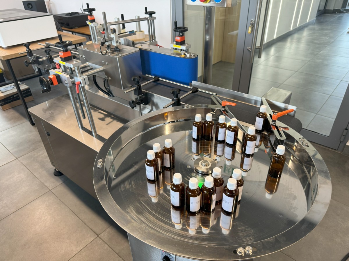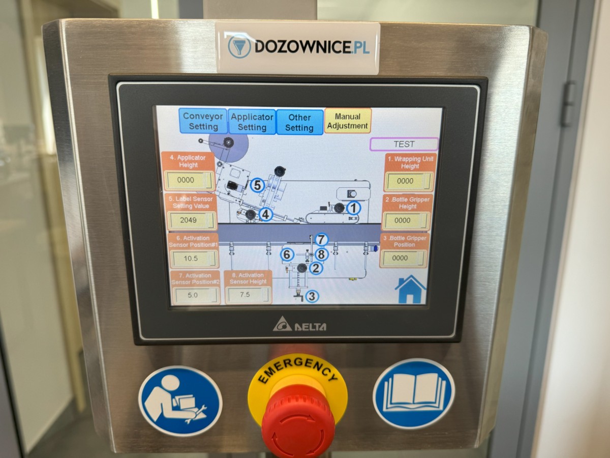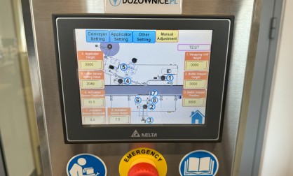 Możliwość dostosowania parametrów maszyny do wymagań klienta oraz możliwość wykonania etykieciarki na wszystkie rodzaje butelek (płaskie, okrągłe, owalne) oraz na pojedynczą lub podwójną etykietę.