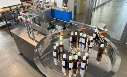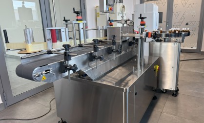 Etykieciarka rolkowa wyróżnia się doskonałą precyzją w stosunku do standardowych etykieciarek tasmowych oraz możlwiością aplikacji 2 etkiet na jednej butelce. Np. butelka wina, która posiada etykietę frontową oraz tylnią.