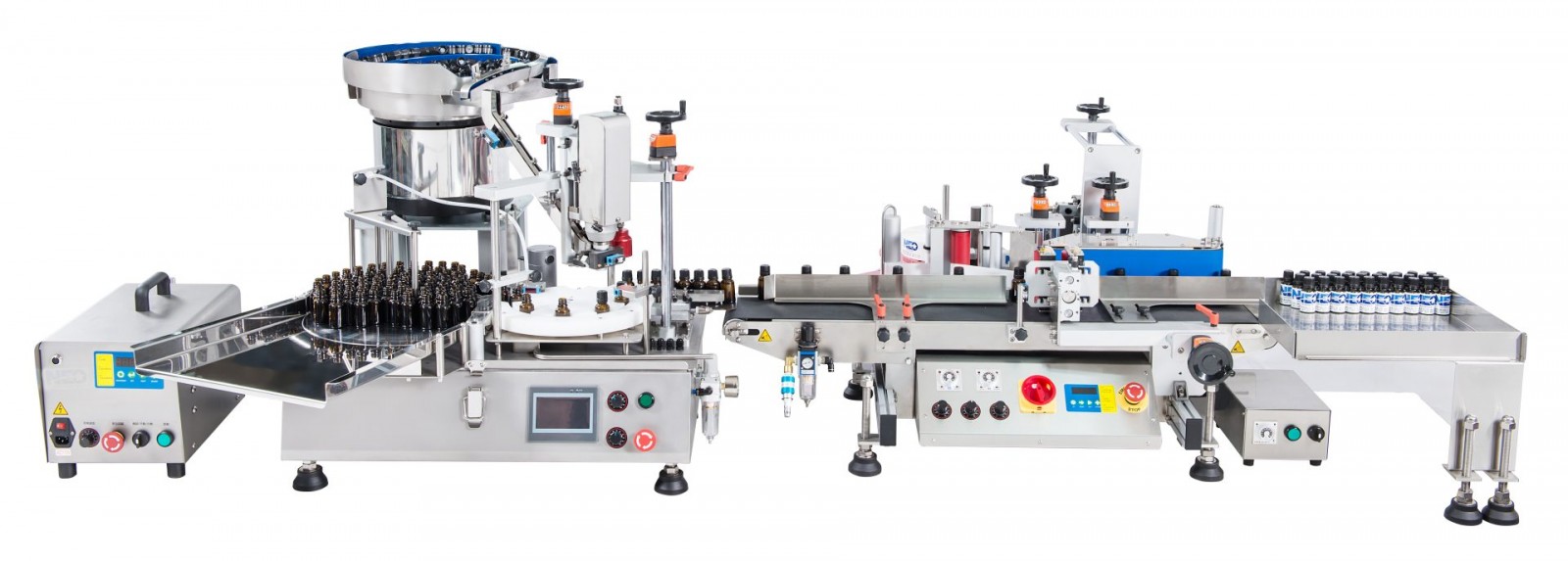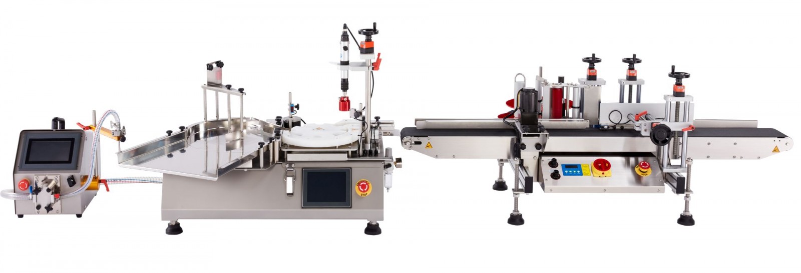 Mała automatyczna linia nalewająco, zakręcająca, etykietująca 1-200 ml